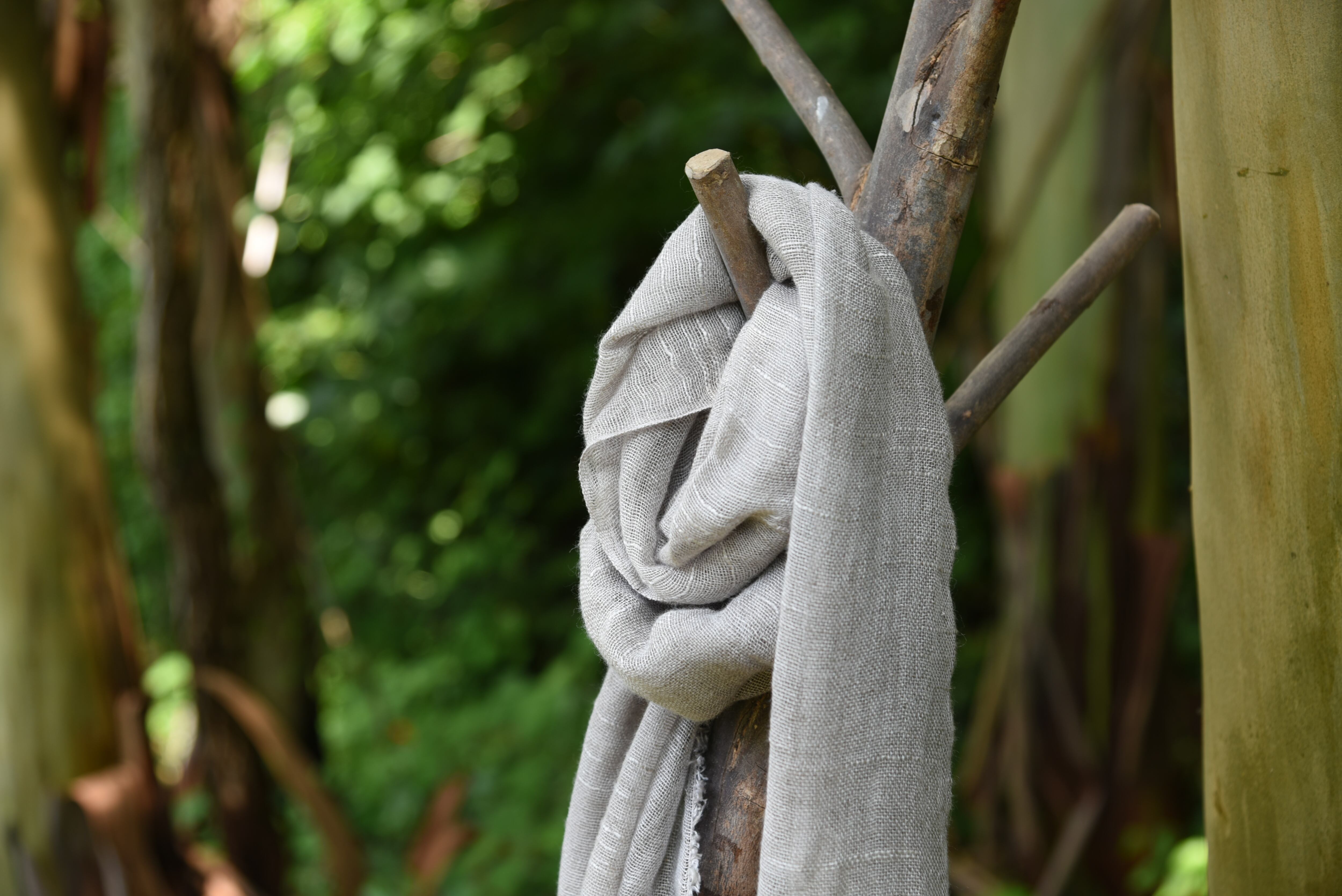 ユーカリウッドチップから得られる成分や天然色の自然の風合いを活かしたストールは、抗菌性や消臭効果もあります。